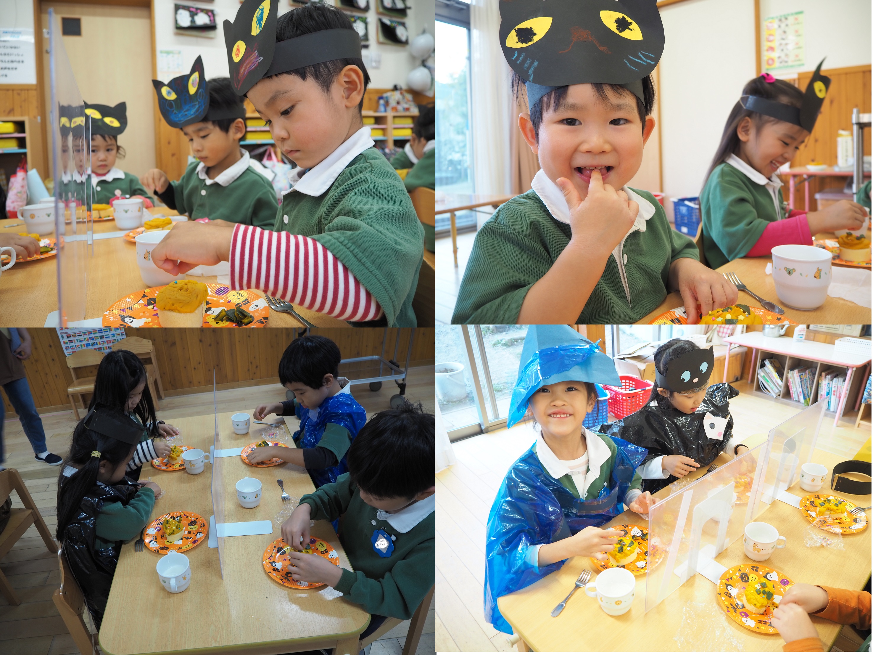 かぼちゃの皮を使ってジャック・オランタンの顔を