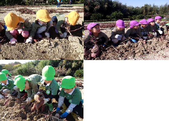 「大きいお芋を掘る!!」とやる気満々で準備をし頑張って土を掘りサツマイモを収穫していました。
