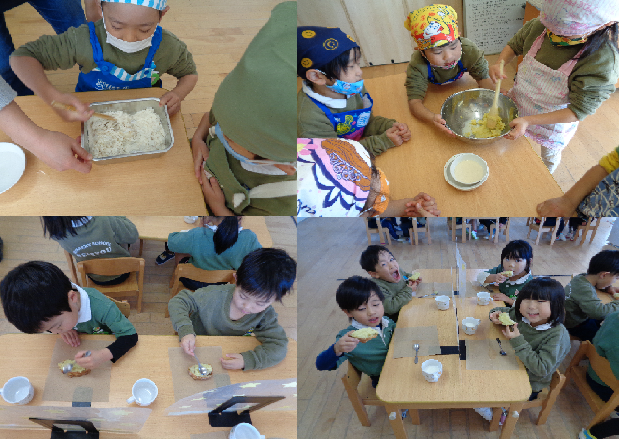12月2日に林檎組(年長)がさつまいもクッキングで薩摩芋パンを作りました。