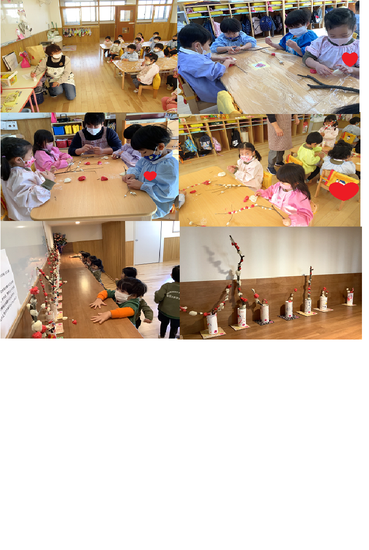 花餅作りをしました。花餅は日本各地に伝わる伝統的な飾り物で、木の枝(主に柳)