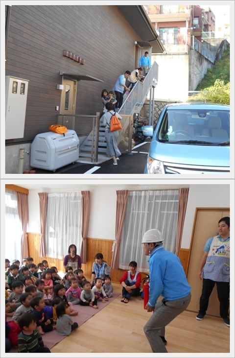 乳児さんは非常階段から、幼児さんは園庭から避難をしました。