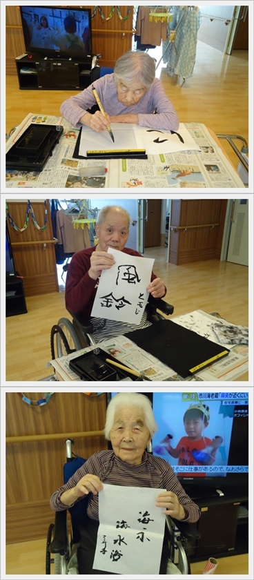 さあ今日は、皆さんでお習字をしましょう