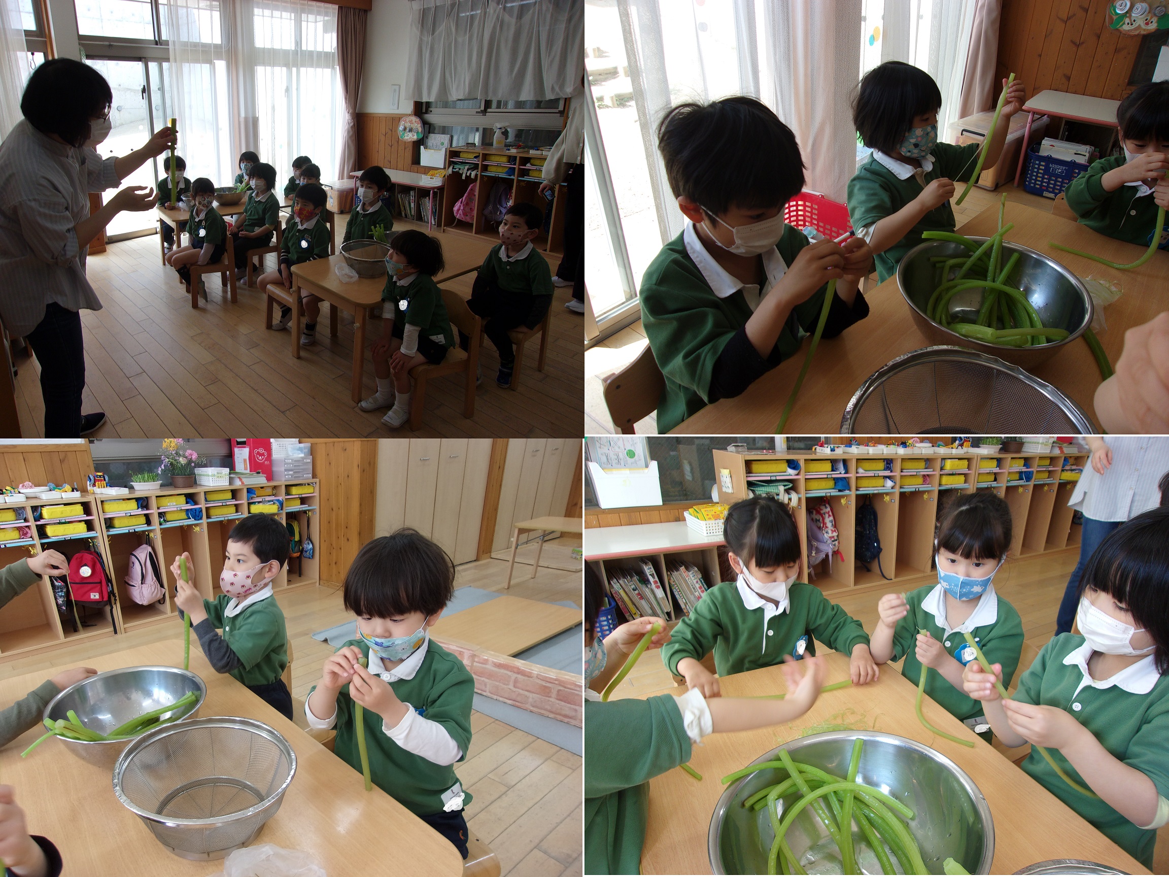 長いスジが取れると嬉しそう。皆で長さを比べたり