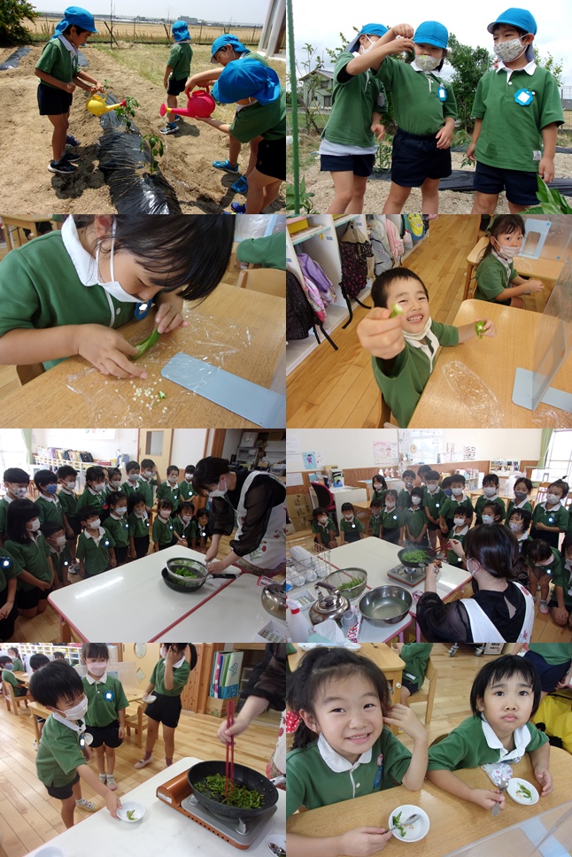 今日はたくさんとれたピーマンをみんなで味見♪