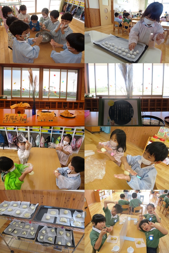 お月見団子作りが楽しかったのか、まんまるお月様の形にする子がたくさんいました。