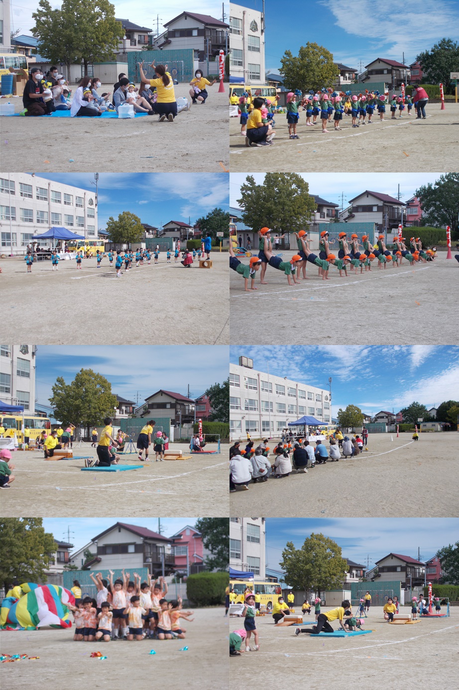 親子競技や遊戯、器具発表、組体操など