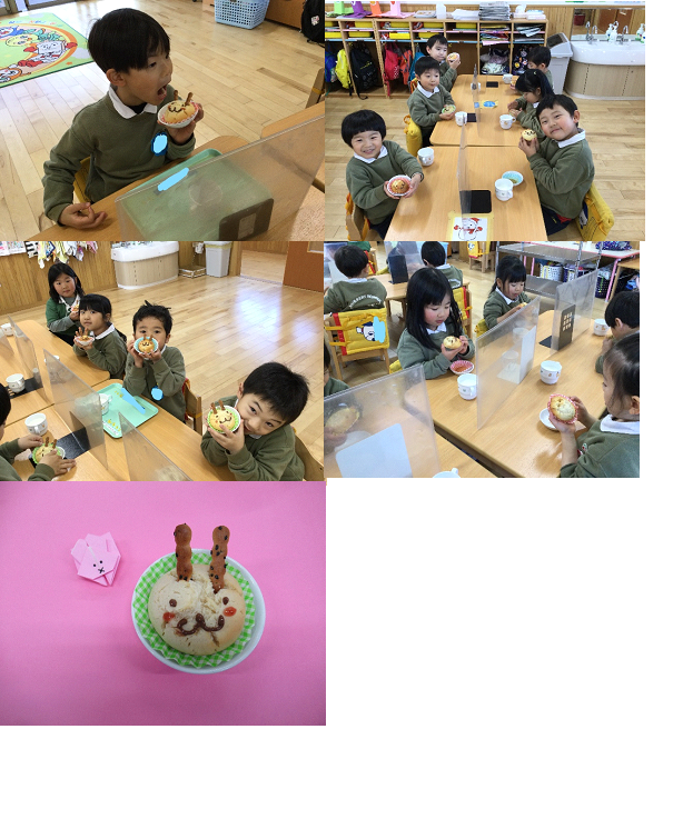 「うさぎちゃんだー!」「早くたべたいな」とすごく喜んでくれた子ども達がみられ大好評でした♪