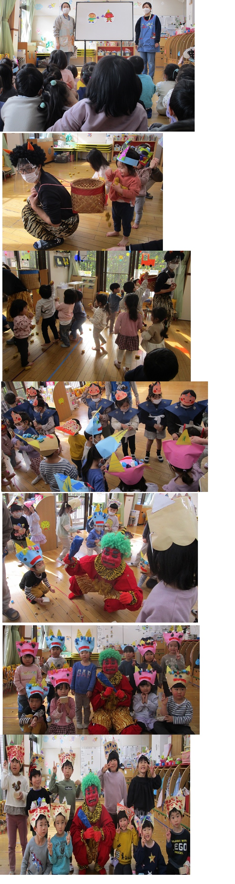 豆まきや鬼のパンツの歌を歌ったり、鬼のお面製作や