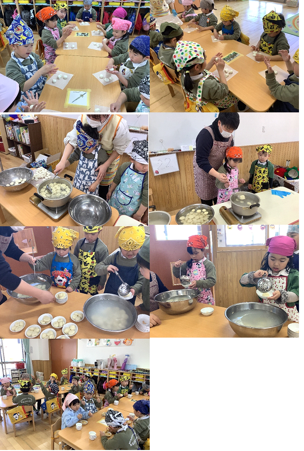 自分達で生地を丸くして先生たちと一緒に茹でました。