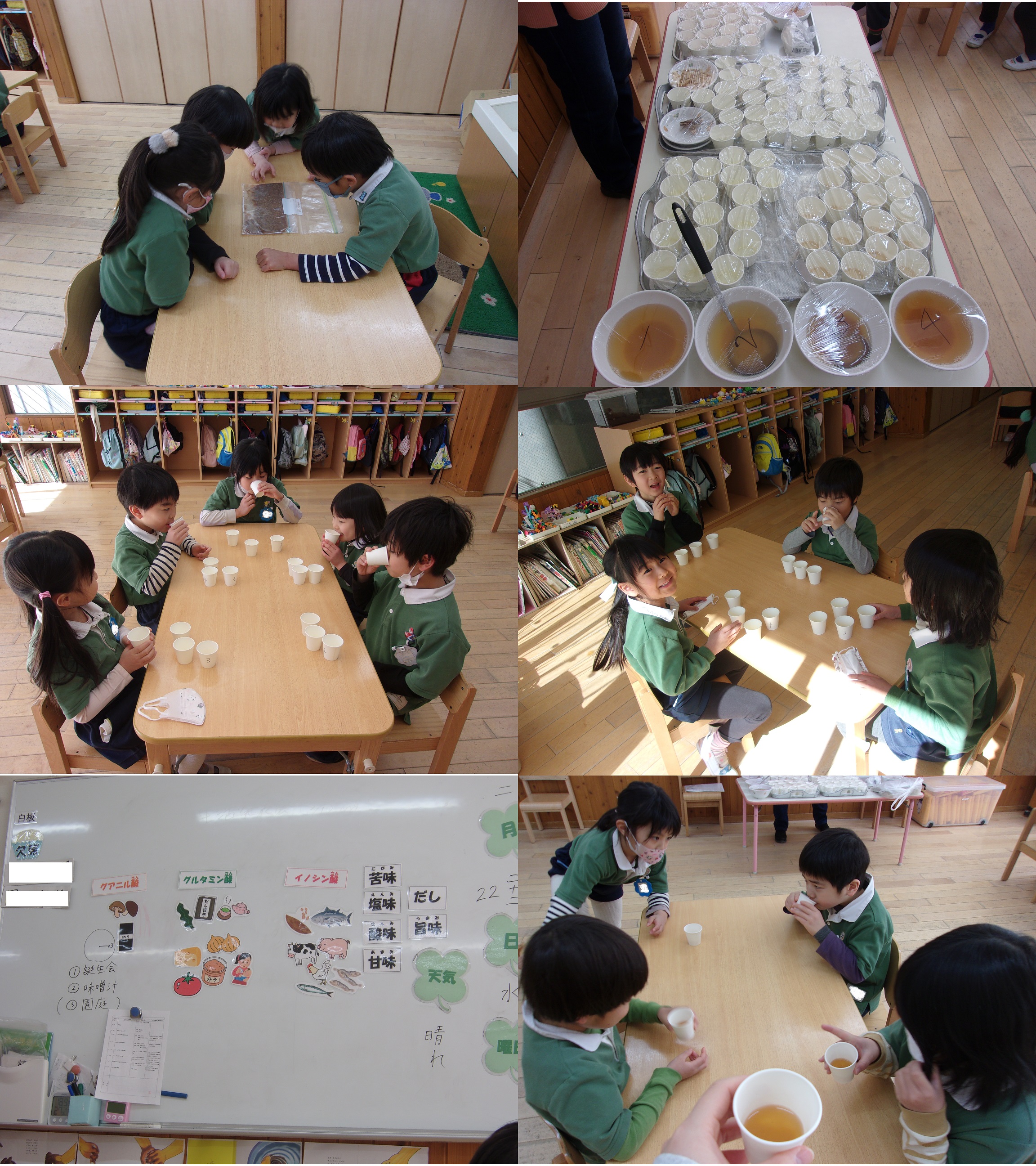 だしの味比べでは4種類のだし(昆布・煮干し・