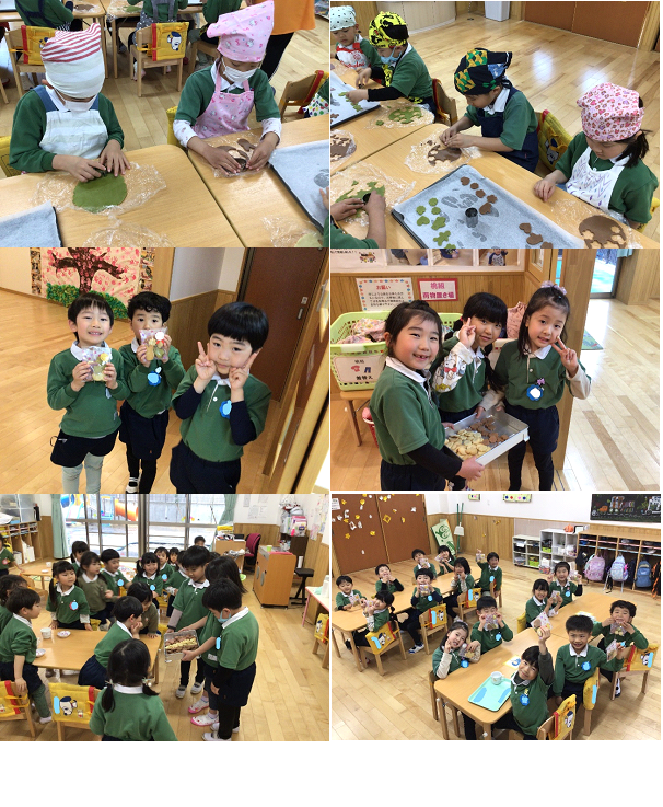 プレーン・抹茶・ココア・紫芋の4種類の味を用意して、好きな型を選んで自分達で型抜きをしました!