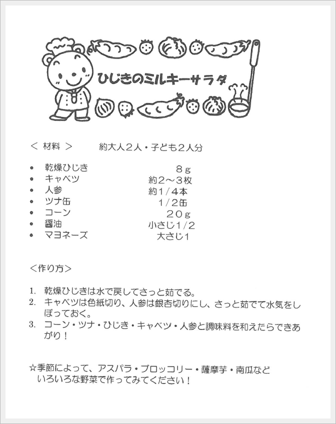 【認定こども園 神の倉清凉保育園】ひじきのミルキーサラダのレシピ