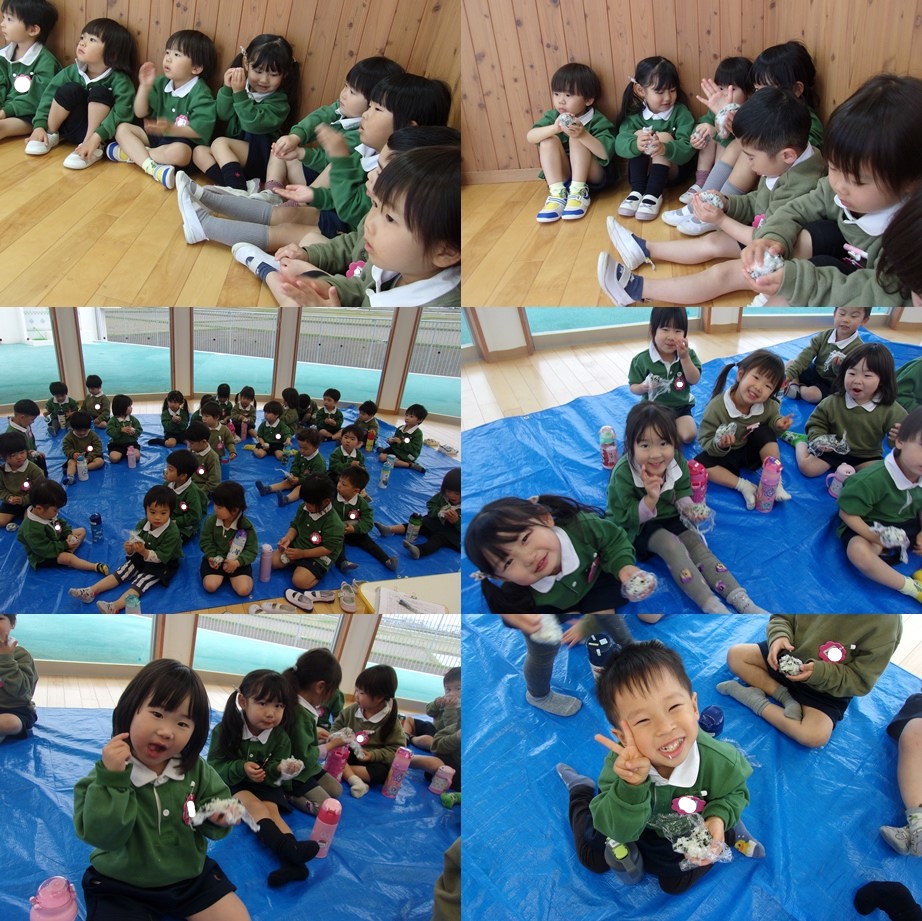 お外はまだ少し寒かったので、遊戯室でピクニック♪