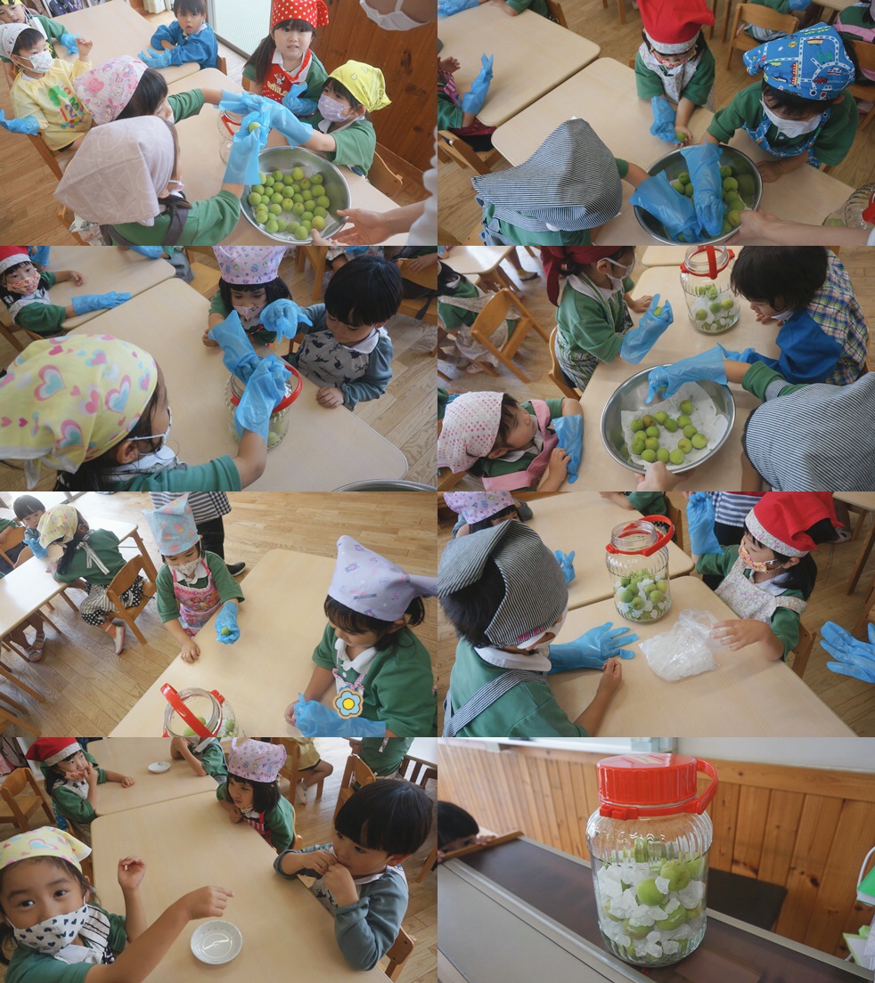 【認定こども園 神の倉清凉保育園】梅シロップ作り(紫陽花組)
