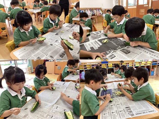 【鳴子清凉保育園】ゴーヤのワタとり~紫陽花組~
