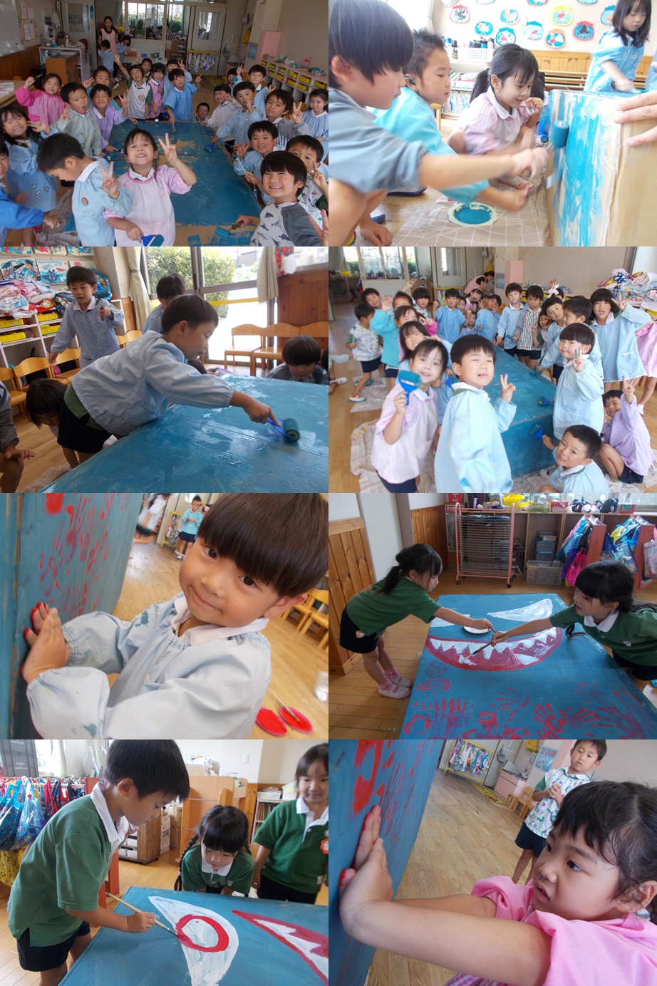 絵の具を塗ったり、手形をつけてみたりして