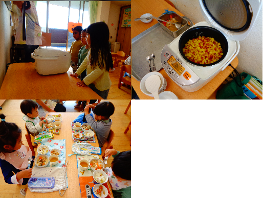 10月25日に檸檬組(2歳児)が先日掘ったお芋を使ってさつまいもご飯を作りました。