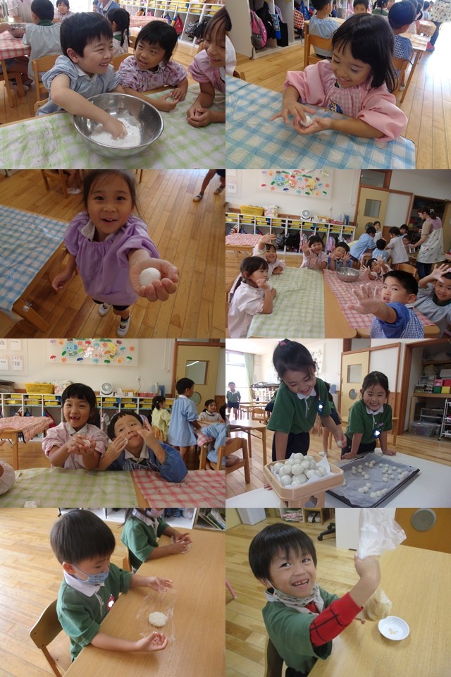 幼児クラスのお友達でお月見団子作りと、秋のお彼岸におはぎ作りを行いました。