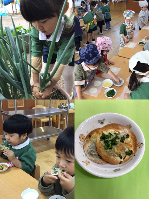 園庭で育てた葱を桜組さんが収穫!