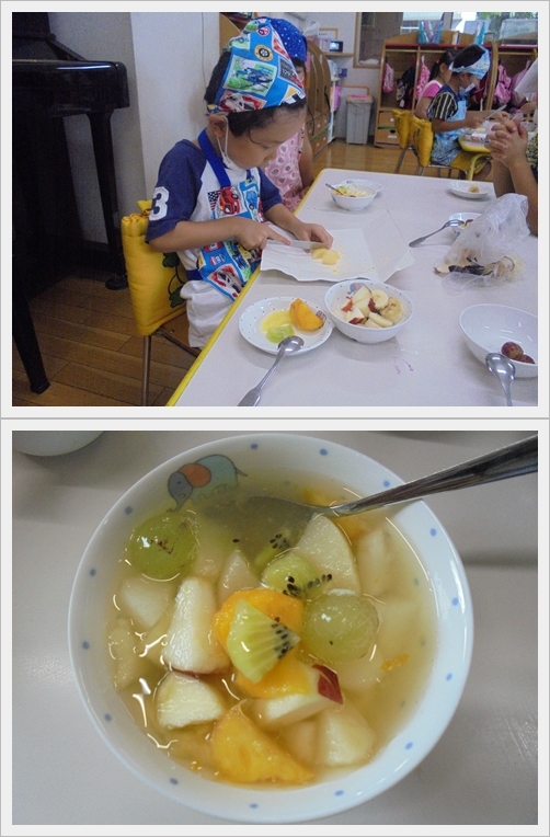 【認定こども園 清凉保育園】クッキング『フルーツポンチ』(もみじ組)