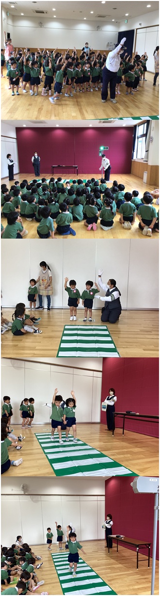 今日は地域の交通安全指導員の方が保育園に訪問して頂き交通安全指導をしてくれました。