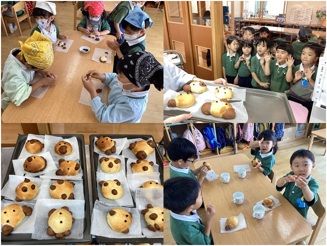 焼きたてのパンはほんのり甘く「自分で作ったからとってもおいしい」と喜んで食べてくれました。