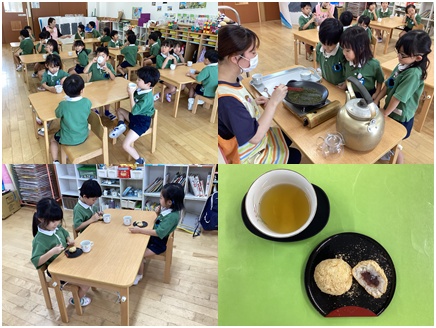 【鳴子清凉保育園】お茶の飲み比べ(緑茶・ほうじ茶)