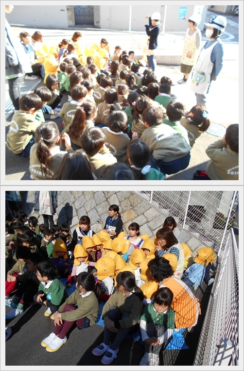 大きいクラスのお友だちは、口をハンカチで覆って、