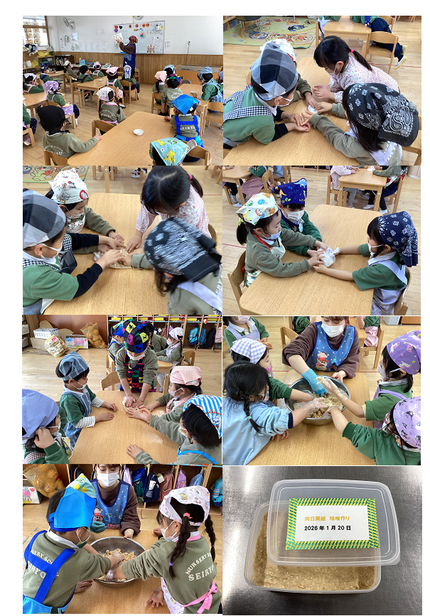 【鳴子清凉保育園】味噌作り(向日葵組)2026年1月20日