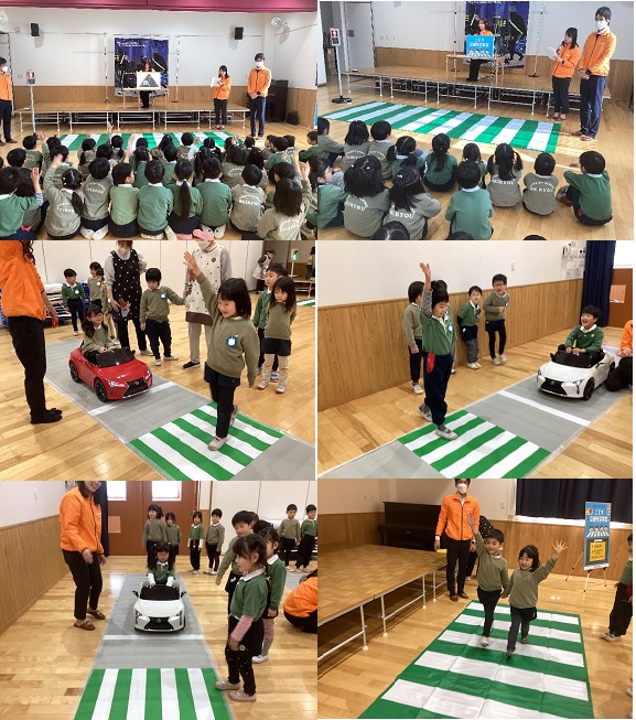 紫陽花組・向日葵組の子ども達がトヨタカローラ愛知の方々による交通安全指導を受けました。