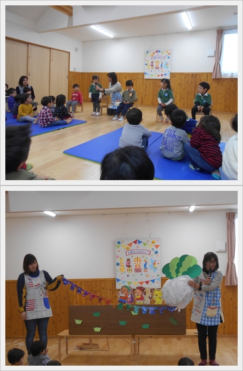 保育士の出し物は「おおきなかぶ」のペープサート。