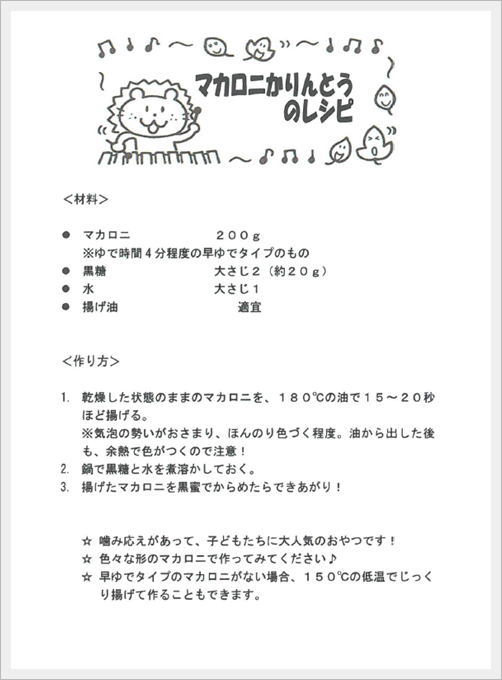 【認定こども園 神の倉清凉保育園】マカロニかりんとうのレシピ