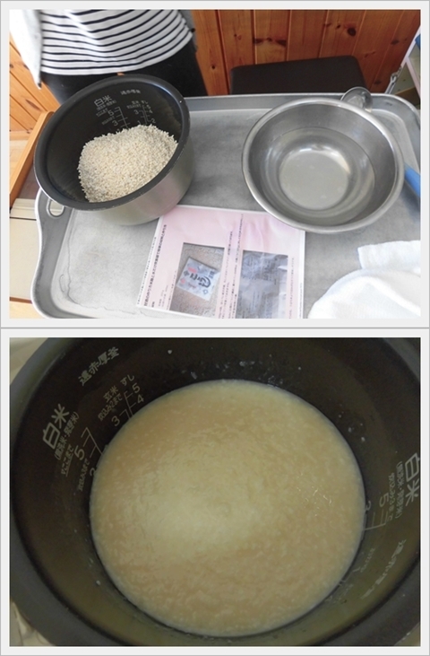 米麹にお湯を入れて、炊飯器の保温で