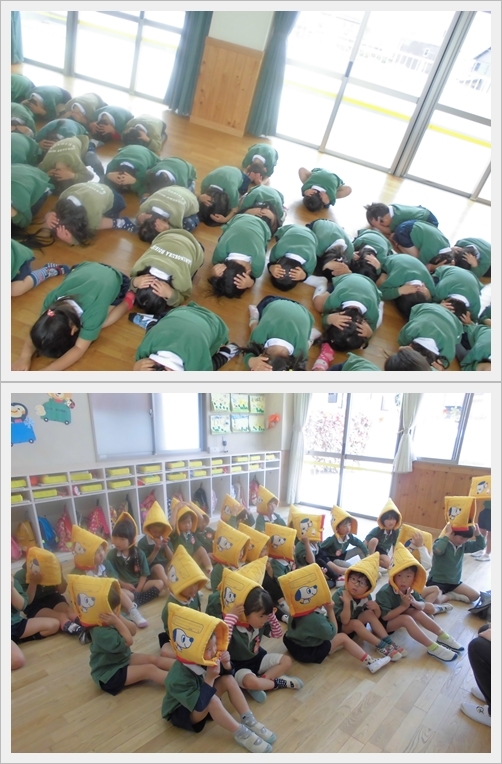ダンゴ虫のポーズや防災頭巾の被り方を
