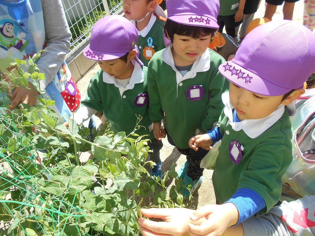 【東神の倉清凉保育園】スナップ豌豆の収穫