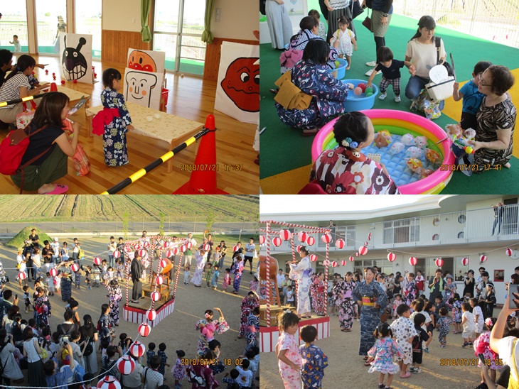 その後園庭で櫓を囲み、太鼓の音に合わせて盆踊りをしました。