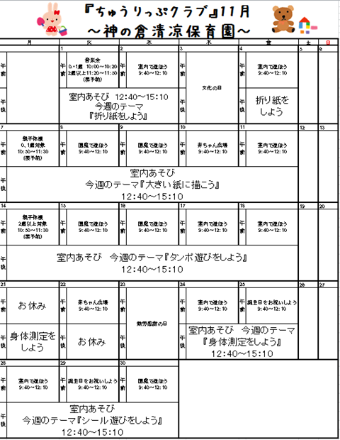 【社会福祉法人 清凉会】【ちゅうりっぷクラブ】11月分2016年10月17日