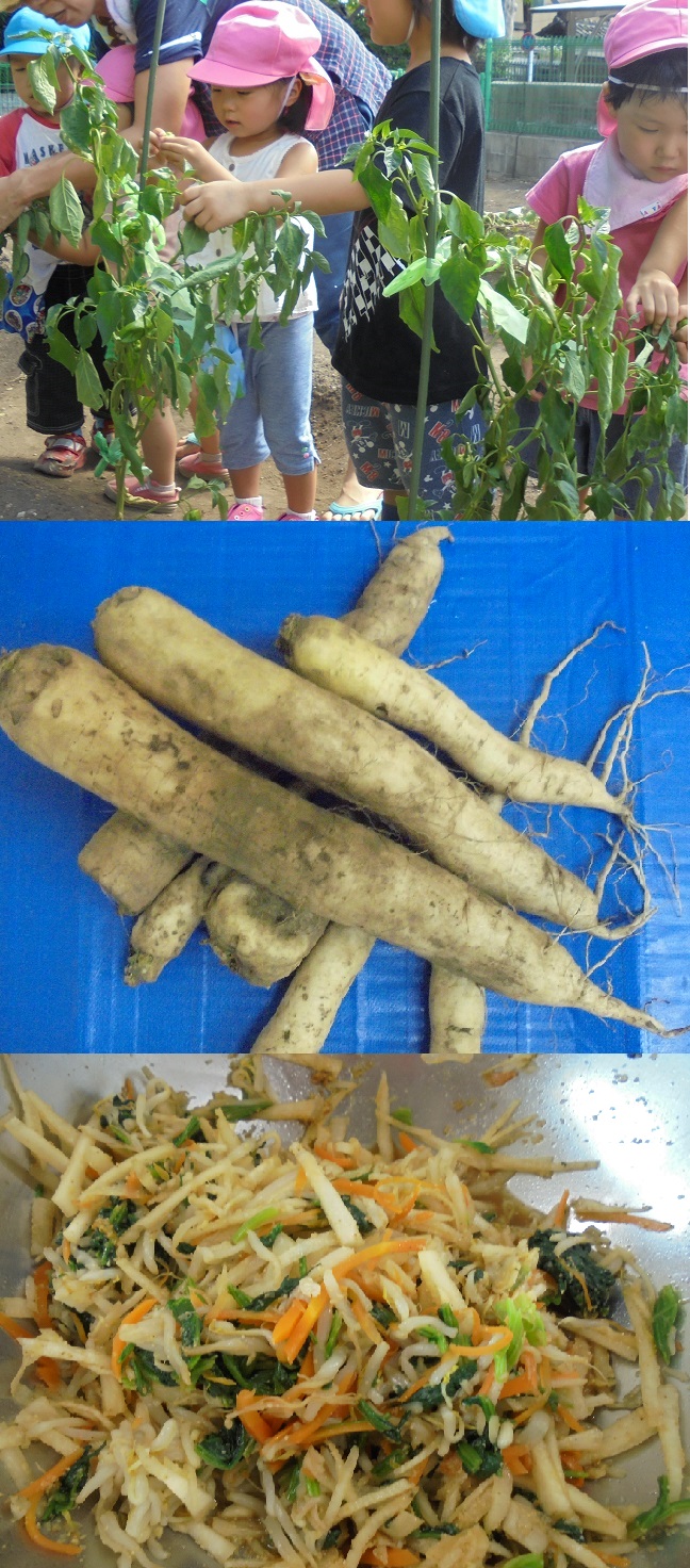 【認定こども園 清凉保育園】畑の大根・ピーマン