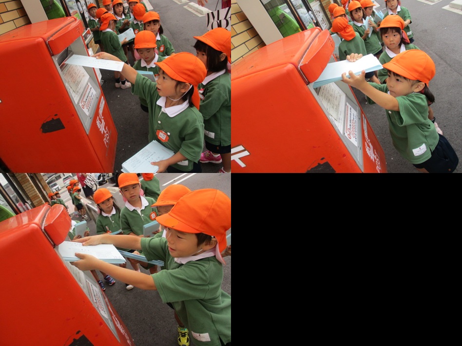 おじいちゃんおばあちゃんに書いたお手紙を向日葵組(4歳児)がポストへ投函に行きました。「ここに入れたら届くの?」「おばあちゃんたち喜ぶかな?」と心配そうな子ども達。お手紙を入れ終わった後、みんなで「おじいちゃんおばあちゃんのところにちゃんと届きますように!」とお願いしました。