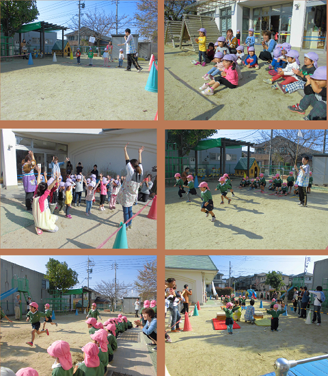 平日にも関わらずたくさんの保護者の皆さんに来て頂き園庭はさながら小運動会状態。