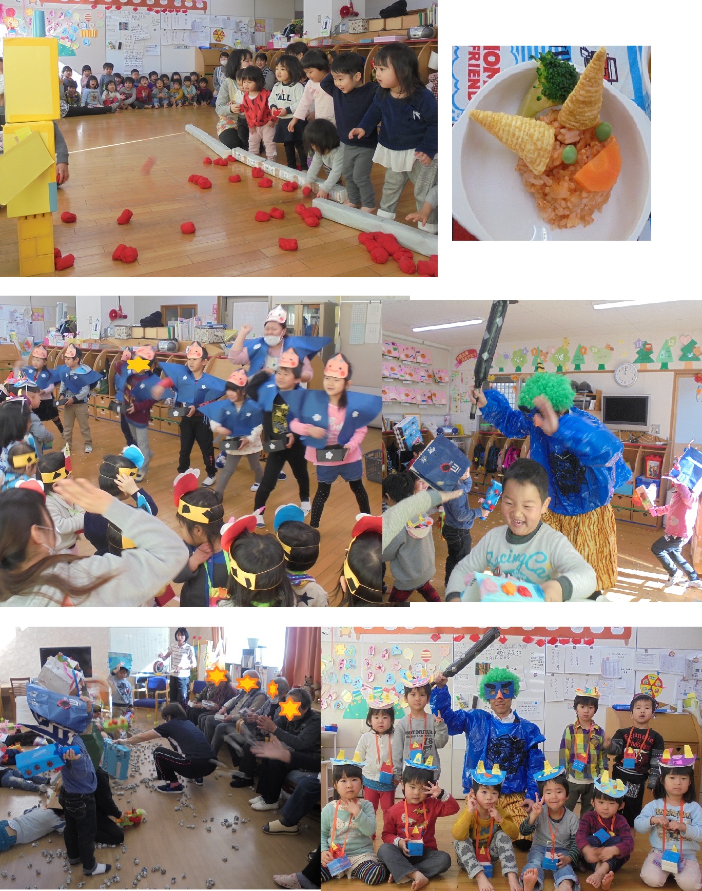 各クラスでオリジナルの鬼のお面や升を