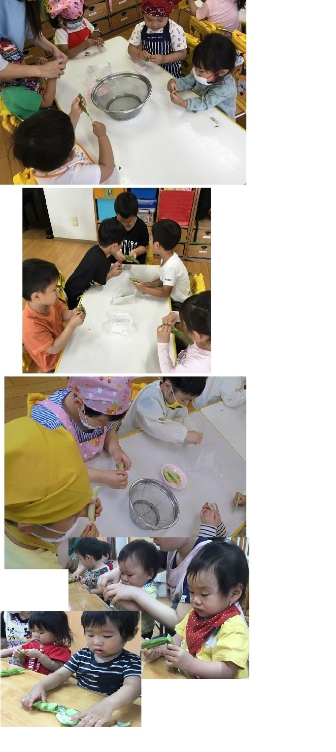いろいろな豆のさやから実を取り