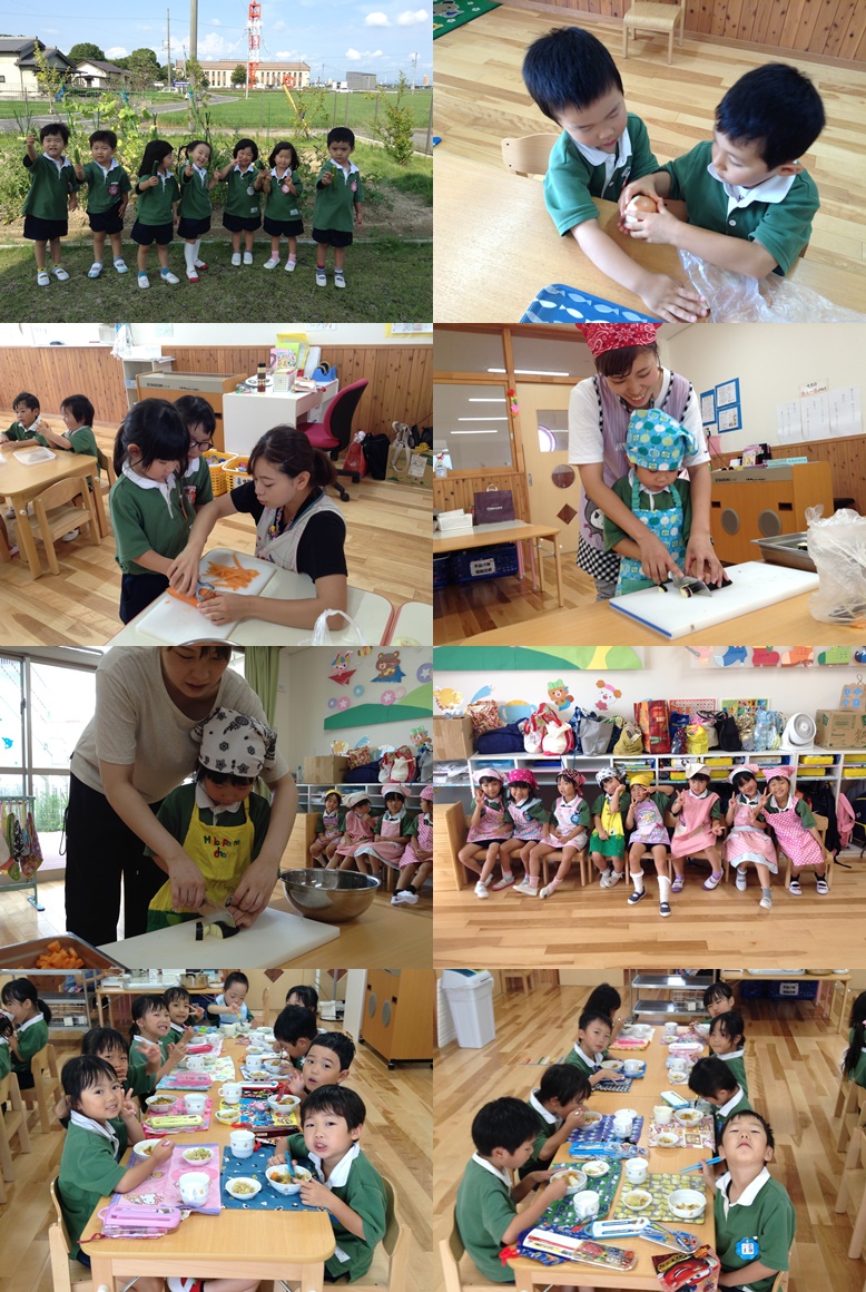 昨日幼児クラスが給食の夏野菜カレー作りをしました。