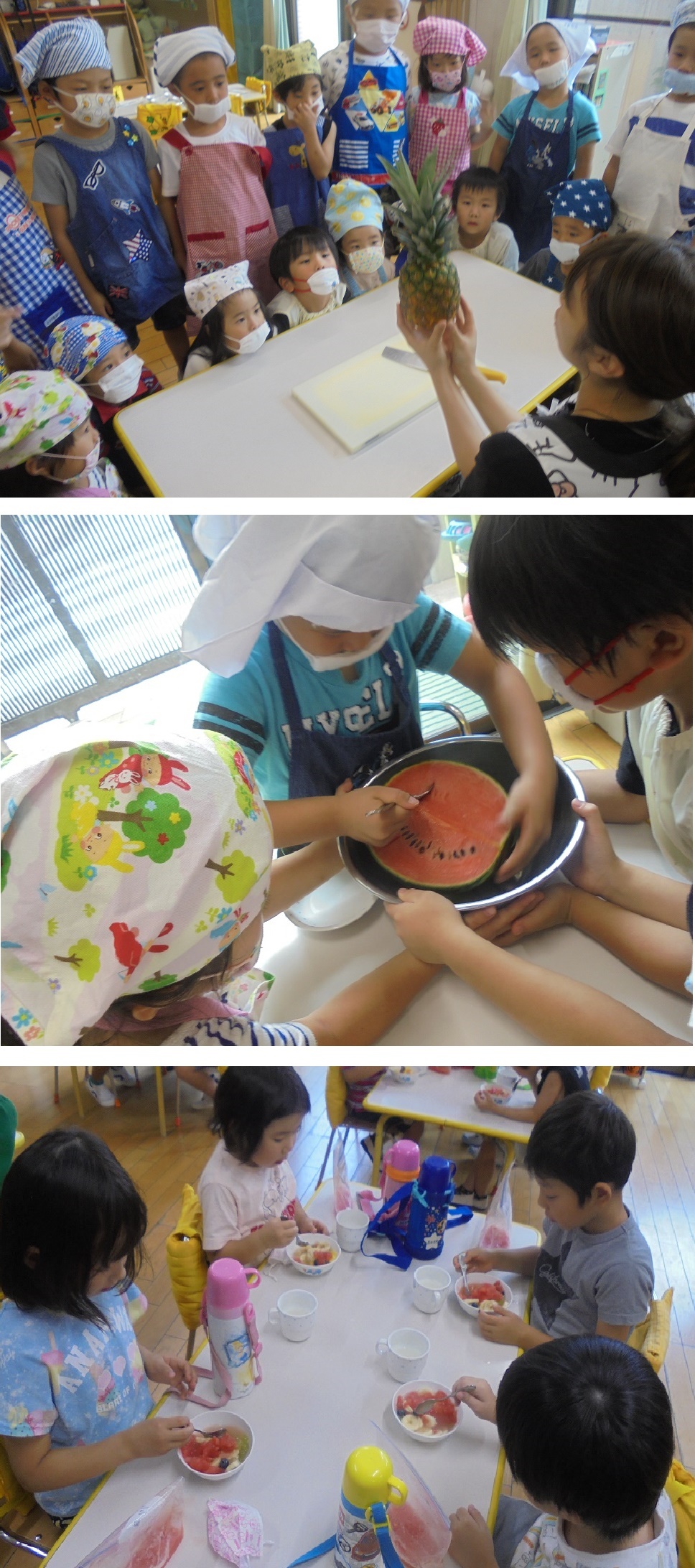 【認定こども園 清凉保育園】7月クッキング「フルーツポンチ」(もみじ組)