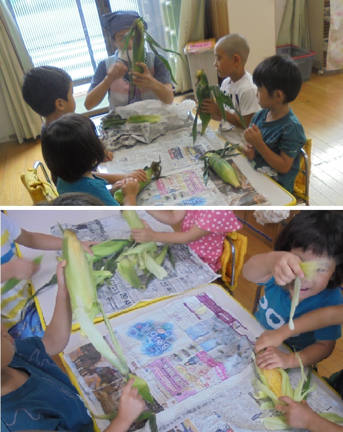 【認定こども園 清凉保育園】とうもろこし皮むき