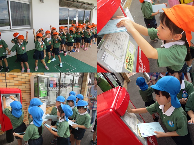 おじいちゃんおばあちゃんへの手紙を紫陽花組(5歳児)と向日葵組(4歳児)がポストに投函しに行きました。