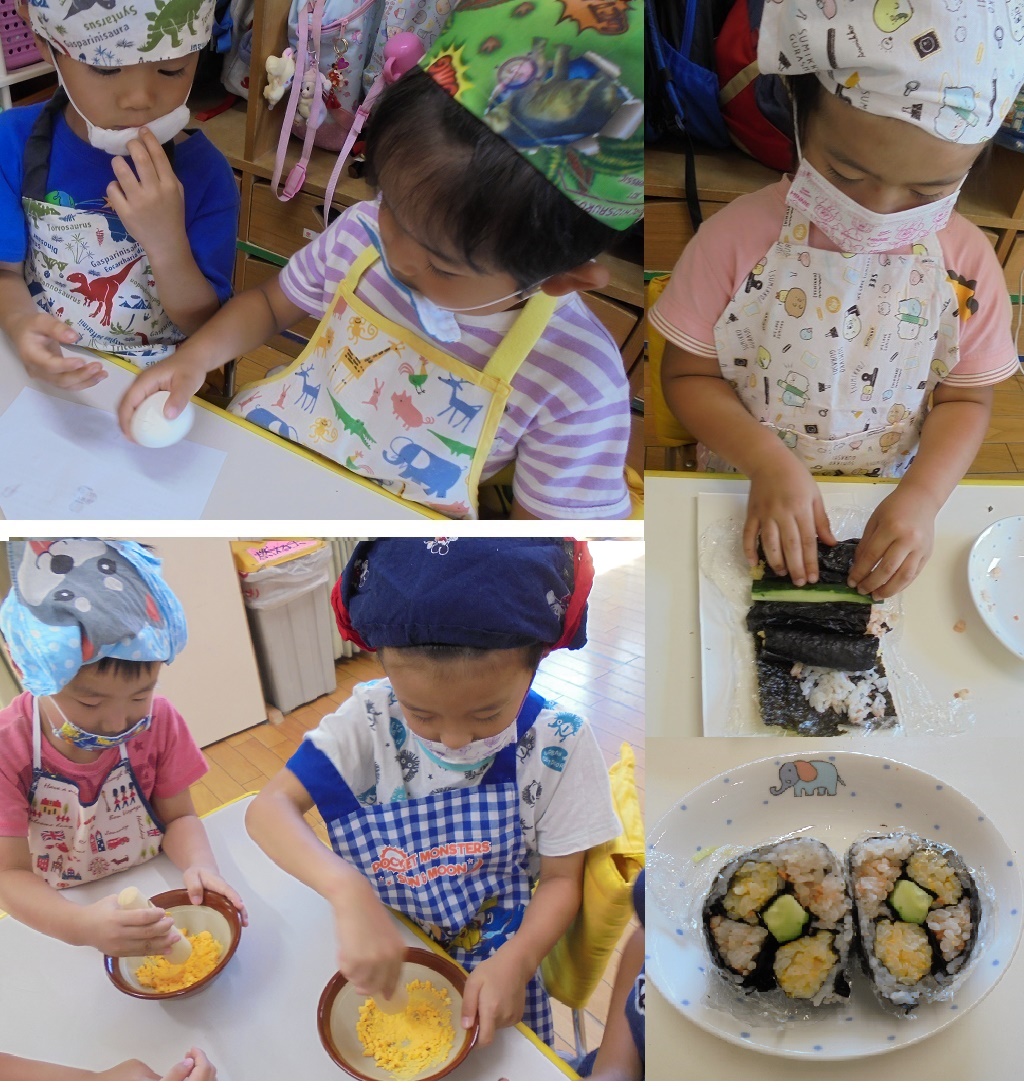 【認定こども園 清凉保育園】9月クッキング「カラフル海苔巻き」(もみじ組)
